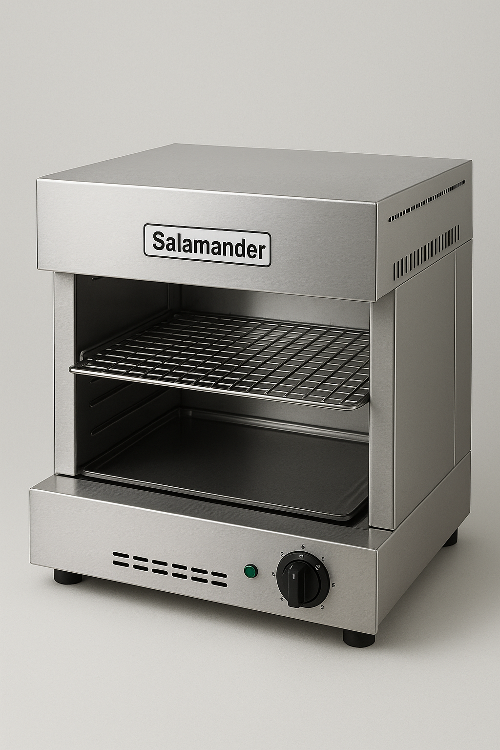 Der Salamander ist ein kompaktes, leistungsstarkes Küchengerät, das überwiegend zum Überbacken, Gratinieren, Karamellisieren und kurzen Anbraten eingesetzt wird. Er erzeugt intensive Oberhitze, meist über Infrarotstrahler oder Heizstäbe, die von oben auf das Gargut einwirkt und so in sehr kurzer Zeit eine knusprige, goldbraune Kruste erzeugt. Durch seine schnelle Reaktionszeit und punktgenaue Hitze eignet sich der Salamander ideal zur Veredelung von Gerichten wie Gratins, Sandwiches, Aufläufen oder zur Karamellisierung von Desserts wie Crème brûlée.